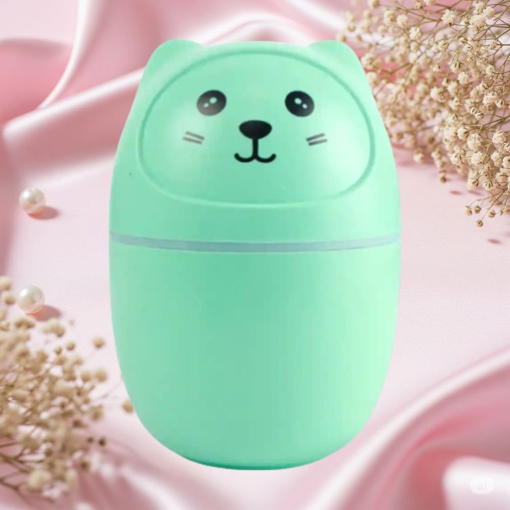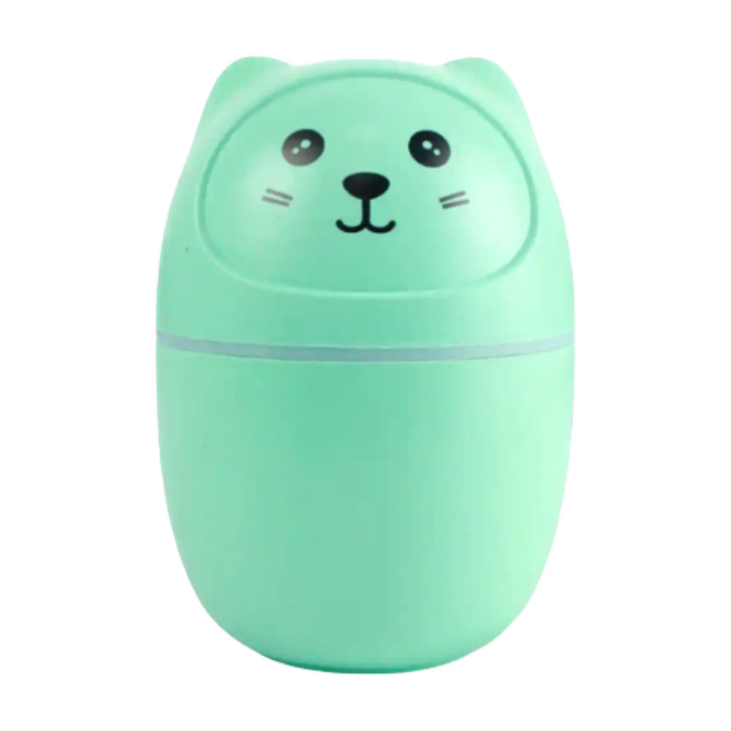 Tu dosis diaria de bienestar con el diseño más adorable. Este humidificador no solo cuida tu piel y tu aire, sino que decora tu espacio con su luz ambiental y su encantadora forma de gatito. El toque de serenidad y estilo que tu escritorio o mesita de noche necesitaba.